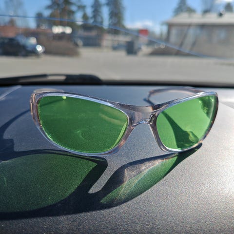 Vintage-lasit 90-luvulta, hyväkuntoiset ja naarmuttomat, joskin oikea aisa hyötyisi pienestä kiristyksestä.