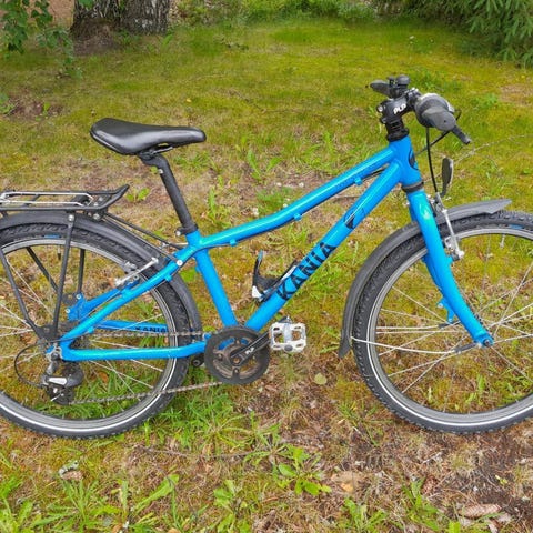 Lasten pari kesää käytetty polkupyörä. Tuumakoko 24". 8 vaihdetta. Huollettu viime vuonna ja mm. vaihdevaijeri vaihdettu. Ohjaustangon käsikahvat kuluneet rikki, muuten käytön jälkeä, mutta ehjä. Nouto piispanristi.