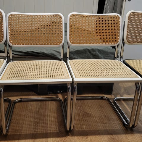 Myynnissä olisi 5 kpl identtisiä tuoleja joista yhden rottinki on vain vähän erivärinen.
