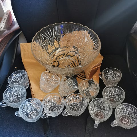 Myydään 8kpl laseja, 4 kultaista ja 4 hopeista. Lisäksi 5 lautasta, kermakko ja sokerikko (kultaisia). Kaikki ehjiä.