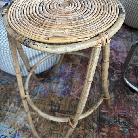 Matala, rottinkinen kukkapöytä.