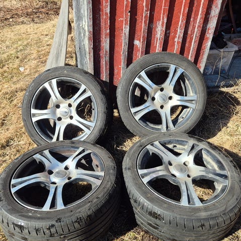 Myydään kuvan mukaiset vanteet renkaineen suoraan käytöstä. Vanteet on suorat. Hapettumia ym kosmeettista vikaa löytyy. ET muistaakseni 45.
