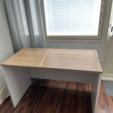Myydään tietokonepöytä. Ei ole kedon kaunein kukkanen, mutta ajaa asiansa tietokonepöytänä tai tilansa puolesta vaikka askarteluun!
