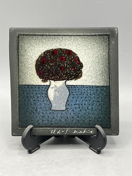 Tukeva, pyöreä sohvapöytä, jossa on alahylly. Pöydän halkaisija on 80 cm ja korkeus 60 cm. Laadukkaalta vaikuttava tammiviilu pinta. Pöydän pinnassa on havaittavissa kulumaa ja naarmuja.