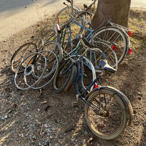 Neljä pyörää + 1 runko, kohtuullisessa kunnossa. Nopea nouto.