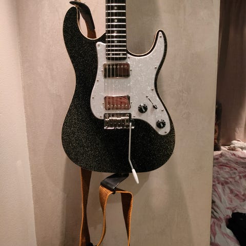 4‑kielinen sähköbasso, jossa on jazz‑tyylinen runkomuoto ja sunburst‑viimeistely. Merkintöjä ei ole, mutta suht painava yksilö. Voisi olla Squier tai Tokai.