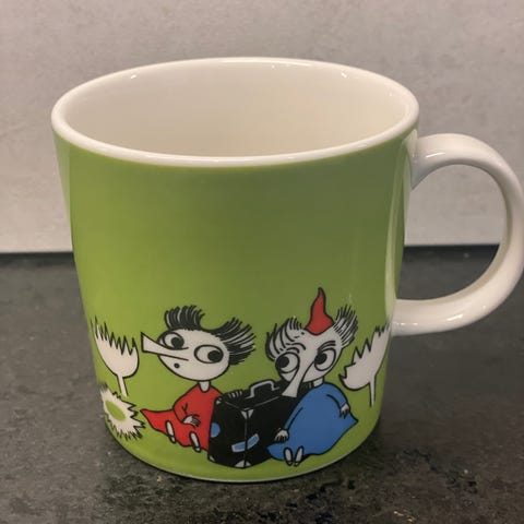 Myydään 2005-2017 tuotannossa ollut täysin ehjä Tiuhti ja Viuhti -Muumimuki.