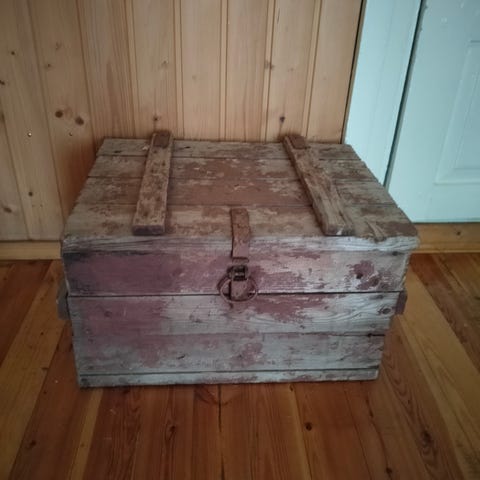 Iso puinen arkku, pöydäksi, säilytykseen ym. Koko 140 leveys, 60 kork. 70 syvyys