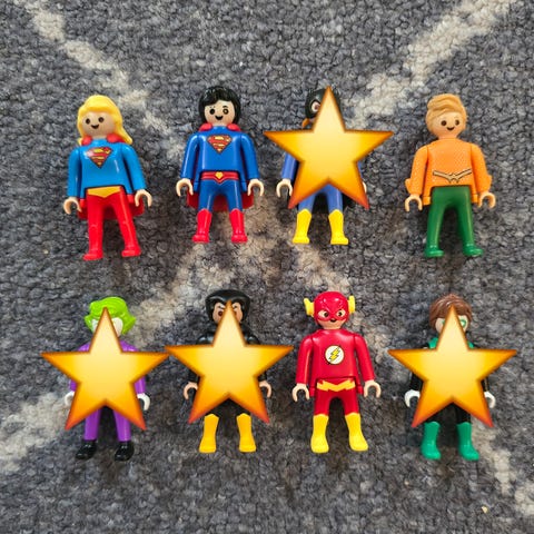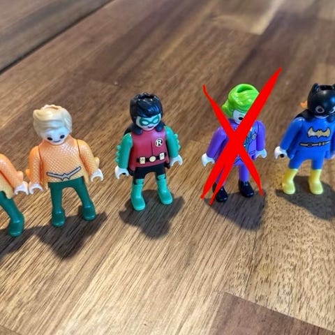 Pakettina Joker, Super girl, Green Lantern ja kaupan päälle puolikas Robin.