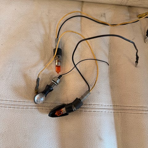 Paketista otettu ja kerran kokeiltu. Kiinnitys M8. Johtoa n.22cm. Musta -, keltainen +. Kirkas oranssi led-valo. Runko metallia!
