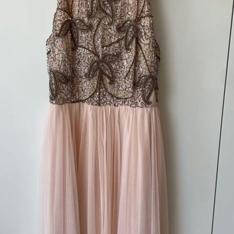 Värikkäämmäksi tuunattu vaaleanpunainen trikoomekko. Tanssiasuna käytetty.