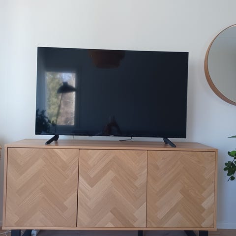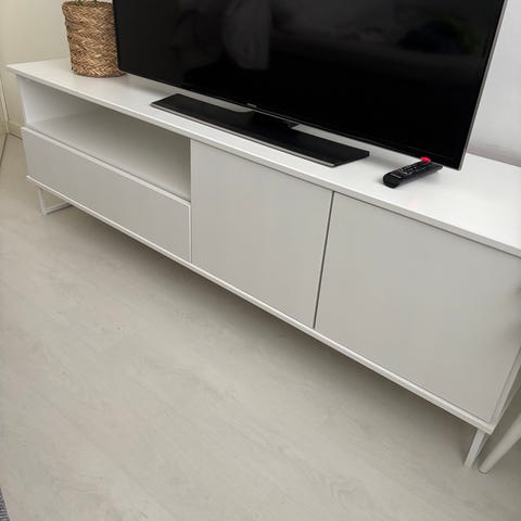Upea, hyvin säilynyt loimukoivuinen senkki, jossa on lasisten liukuovien lisäksi lukittava kaappi (avain on tallella). Lasit eivät pysy urassaan aukon oikeassa reunassa, joten tämä tarvitsisi pientä korjausta. Kaapin sisässä on tekstiä ja piirros. Lähtevät viimeistään hiomapaperilla pois. Senkki muistuttaa ASKOn aikanaan valmistamaa lasiovista senkkiä.