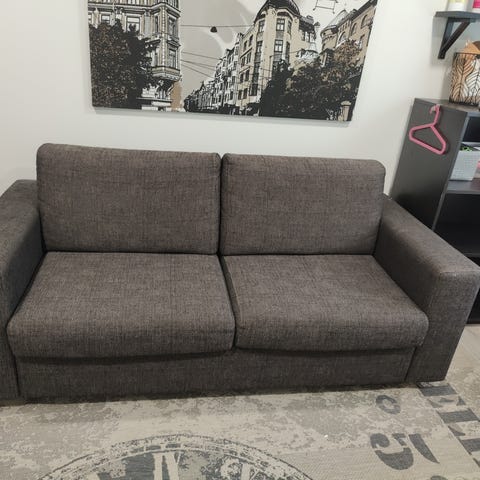 Ikean (mallistosta poistunut) vuodesohva. Patjan koko 90x 200. Selkänojat irroitettavat ja vapaasti sijoitettavissa. Irroitettavat ja pestävät päälliset, ”farkkukangasta”.