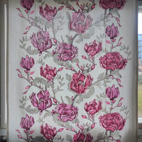 Vallila Kukallinen vaalea verho, jossa on suuri kukkakuviointi. Sopii käytettäväksi esimerkiksi olohuoneessa tai makuuhuoneessa antamaan huoneeseen pehmeää valonsuodatusta ja koristeellista ilmettä.Verhoja on 3kpl.Tehdasmittaiset.