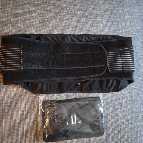 Uutena ostettu, ollut käytössä 2 kuukautta. Mukana käyttämätön lämpö-/kylmägeelipussi jonka voi sujauttaa vyön piilotaskuun tarjoamaan välitöntä helpotusta alaselän kipuihin.