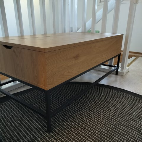 Uuden veroisessa kunnossa oleva sohvapöytä, oston jälkeen ollut käytössä vain viikon. Vaalean tammen värinen, mustat metallijalat. Pöydän materiaali mdf-levy. Myynnissä, koska ei sovikaan sisustukseen. Virheettömässä kunnossa. Mekanismi toimii sujuvasti. 120e/tarjoa.