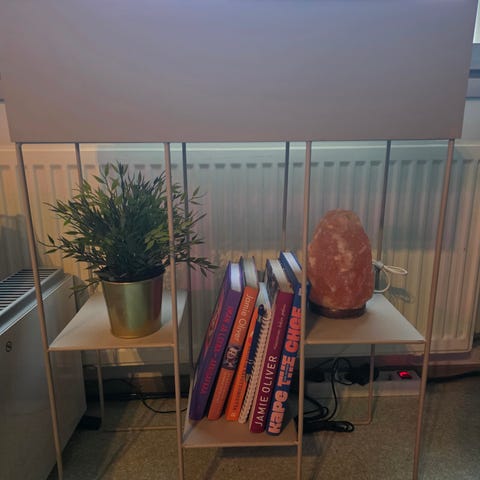 Hieman reunassa jälkeä muuten erittäin hyvä kunto. Korkeus 65cm, ruukkuosan leveys 15.5-16cm.