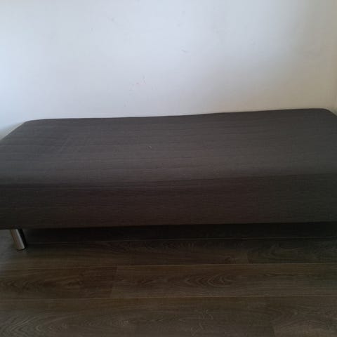 Kulumaa näkyy pintamateriaaleissa, mutta ehjä ja täysin käyttökelpoinen. Mitat 90x200.