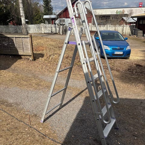 Tikli ammattitason alumiinitikkaat sisä- ja ulkokäyttöön. Tikkaissa on useita leveitä, uritettuja askelmia, jotka parantavat pitoa. Runko on tukevaa materiaalia ja askelmat ovat metallia. Soveltuu esimerkiksi kotitalous- ja remonttikäyttöön, kun tarvitaan turvallista ja vakaata työskentelykorkeutta. Nouto Taka-Töölöstä ja maksu mobilepaylla.