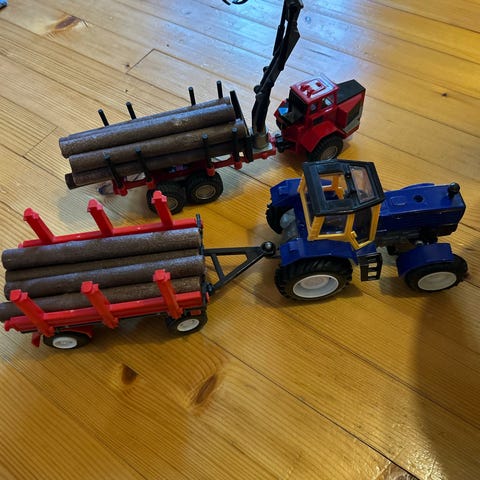 Telaketjutraktori, jossa kääntyvä ja kallistuva puskulevy. Monihampainen liikkuvat takakarhennin, joka irrotettavissa. Yksi piikki karhentimesta katkennut. Muuten siisti seuraavalle leikkijälle. Mitat: 30,3 x 14,6 x 15,8 cm