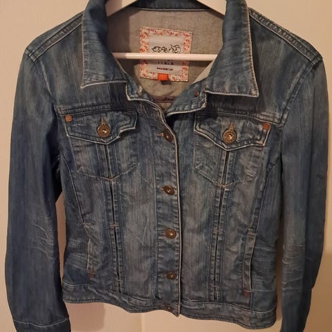 Jack & Jones farkkutakki, koko L mutta vastaa kokoa M. Sininen denim-materiaali. Mallissa on nappikiinnitys edessä, kaksi rintataskua läpillä ja napilla sekä sivutaskut. Perinteinen farkkutakkimalli, joka sopii arkipukeutumiseen. Takki on suunniteltu naisille.