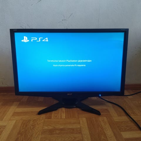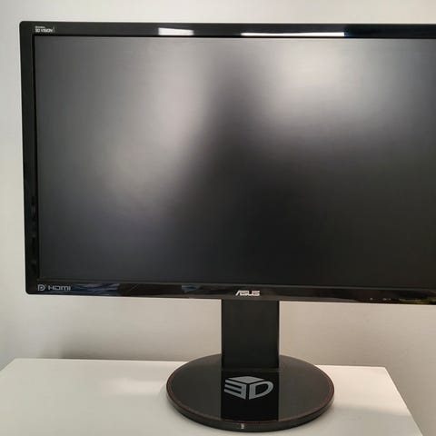 Asus VG248QE näyttö, 24 tuumaa. LED-taustavalaistu näyttö, värinä musta. Näytössä on kääntyvä ja korkeussäädettävä jalusta, jonka avulla ruudun voi asettaa myös pystyasentoon.