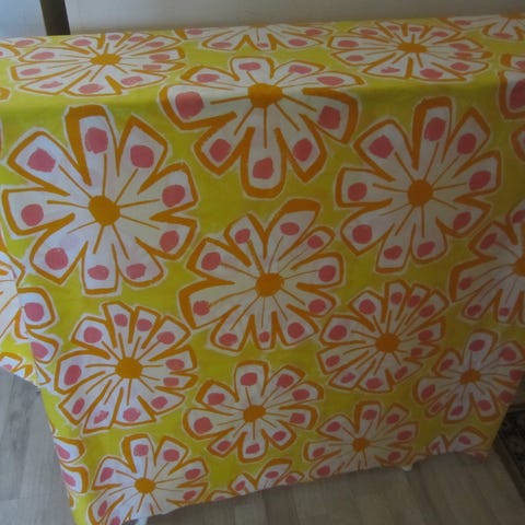 Kankaasta osa leikattu pois - levein kohta 144 cm, pisin kohta 104 cm