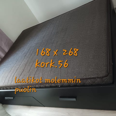 IKEA sänky säilytyslaatikolla. Yhden hengen sänky, jossa puiset sälepohjat ja runkoon integroitu vetolaatikko säilytystä varten. Runkomateriaali on puupohjainen levy ja väri valkoinen. Sopii esimerkiksi makuuhuoneeseen tai lastenhuoneeseen. patja sisältyy hintaan.