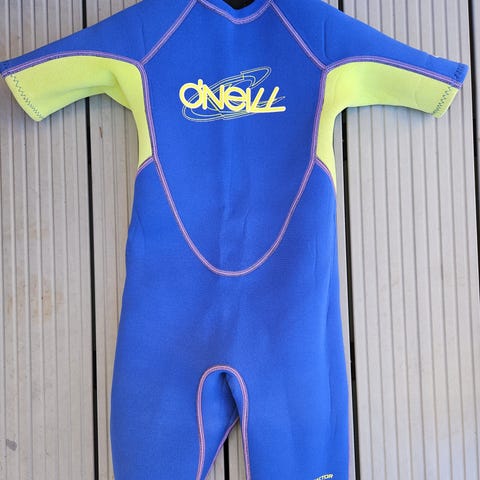 Tribord lasten märkäpuku, koko 116 cm. Lyhythihainen ja lyhylahkeinen malli, etuvetoketjulla. Väri sininen oransseilla hihoilla. Sopii lapselle vedessä oleskeluun ja uimiseen lämpimissä olosuhteissa (>20 °C). Neopreenimateriaali auttaa pitämään kehon lämpimämpänä vedessä.