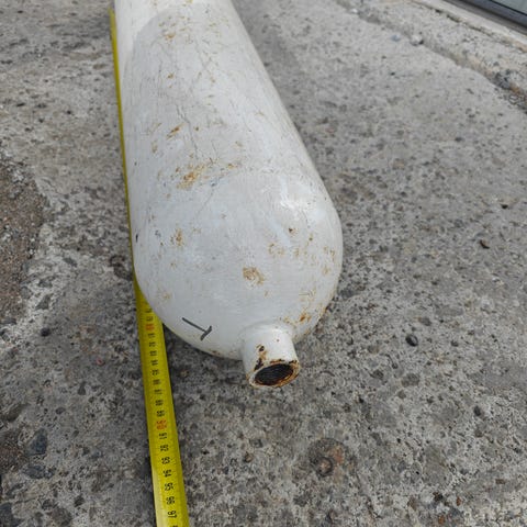 Pitkällä 200 mm puhalluspäällä varustettu paineilmapistooli.