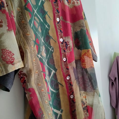 Ihana, laadukas ja kepeä kesäpaita, jota on käytetty yhden kerran. Materiaali tosi miellyttävä, hieman joustava. Hihan pituutta saa hieman muokattua nöyrillä. Pisimmillään viha kuitenkin noin 3/4 osa pituus. Kai-kai mitta 53cm. Koiratalous.