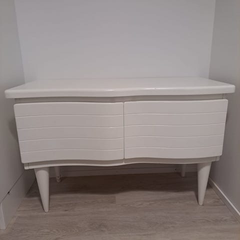 Kaunis ja siro puinen senkki. Senkki on kompaktin kokoinen, väritys kauniin sinertävä. Pääasiassa hyväkuntoinen, mutta ei toki uuden veroinen. Pieniä käytön jälkiä, nämä huomioitu hinnassa. Yhteen laatikkoon avain.