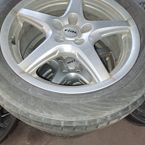 Hyväkuntoiset vanteet ja renkaat. Renkaissa pintaa 6-7mm.