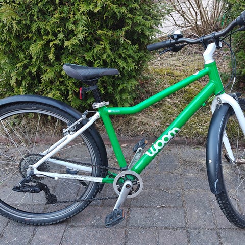Woom lastenpyörä 16". Väri on vihreä, satula ja kahvat mustat. Pyörässä on käsijarrut edessä ja takana sekä lisävarusteena jalka ja takalokari. Nouto Pirkkala / Pere. Hinta 400e