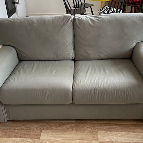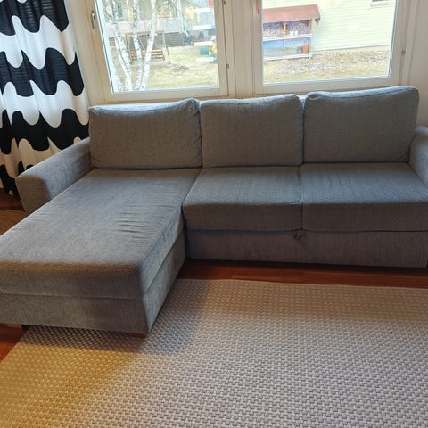 Myytävänä Askosta 4vuotta sitten ostettu kahden istuttava vuodesohva. Kunto hyvä ja hyvä nukkua. Nukkumaleveys 120cm. Mukaan 120cm patja, korkeus 7cm. Päällinen pesty, itse patja alkaa rappeutumaan sivuilta. Ainoastaan haku..