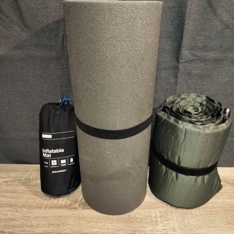 Kaksi samanlaista retkeilyalustaa, joista toinen avaamaton (uusi).
