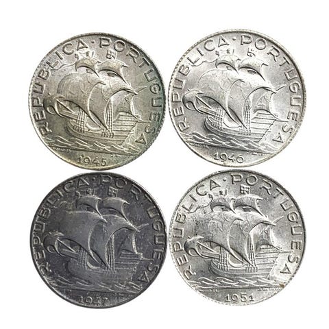 Kolme 2,50 Portugalin escudoaVuodelta 1933, 1937 ja 1951Hopeaa 0,650Kolikot vuodelta 1933 ja 1951 ovat hyvässä kunnossa, vuoden 1937 kolikko on kuluneempi.Katso kuvat, jotta voit muodostaa tarkan käsityksen.Toimitus on tehty erittäin huolellisesti ja seurataan.