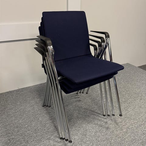Neljä modernia Isku Rudolf tuolia, joissa on tummansininen kangasverhoiltu istuinosa ja mustat käsinojat. Tuolien jalat ovat metallia ja niissä on tukeva rakenne, pinottavissa.Tuolit sopivat hyvin kokous- tai odotustiloihin. Tuolit edustavat modernia tyyliä, joka on yksinkertainen ja toimiva. Tällainen muotoilu on suosittu nykyaikaisissa toimisto- ja julkisissa tiloissa. HUOM! Tuolisettejä löytyy useita. Tämä tuote osana Toimitilan tyhjennysmyyntiä Espoossa. Tuotteilla noutomahdollisuus suoraan toimitilasta perjantaisin 10.4. / 17.4. / 24.4. kello 14-18 välillä. Saat osoitetiedot oston jälkeen. Kotiinkuljetus pk-seudulla 14 pv ostosta. Mikäli olet kiinnostunut isommasta erästä, ole yhteydessä asiakaspalvelu@tavararahaksi.fi