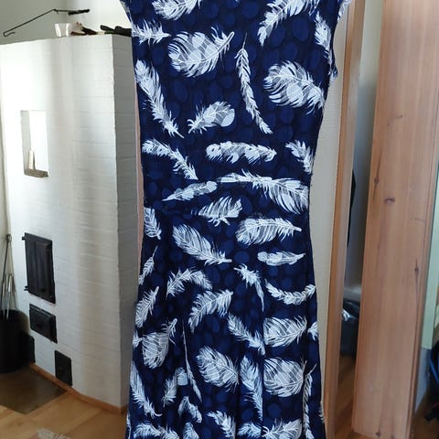 Vyötäröllä musta osa joustava, jonka jälkeen alahelma levenee A-mallisesti.