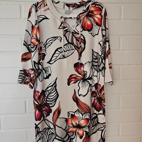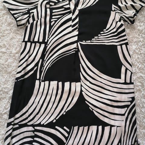 Noa Noa mekko, koko 36/S. Naisten viskoosimekko, jossa kirjava pallokuosi. Mekossa on pitkät hihat ja pyöreä pääntie, jossa pieni halkio edessä napilla. Materiaali on kevyttä viskoosia. Soveltuu arki- ja toimistokäyttöön sekä siistimpiin tilaisuuksiin.