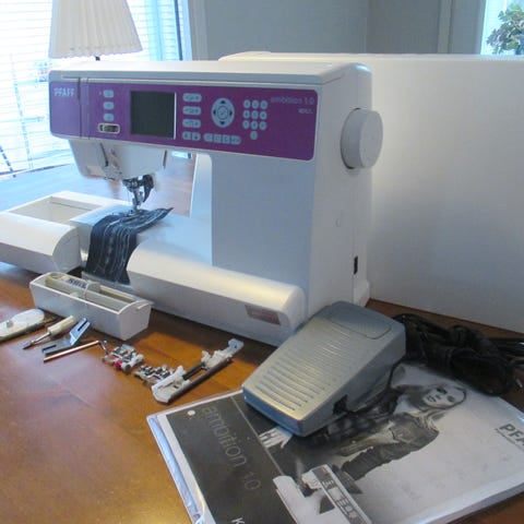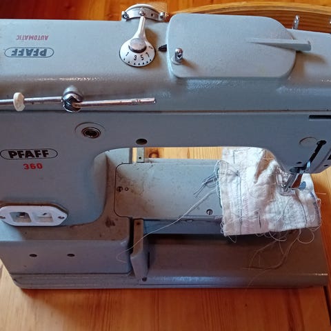 Pfaff 297-1 ompelukone. On siisti ja huollettu mukana on suojakotelo polji lisätaso tarvikerasia jossa paikka polkimelle lisätasolle on puolia neuloja ja paininjalkoja eikun