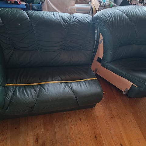 Annetaan sohva, irroitettavat päälliset, divaaniosan päällisen vetoketju rikki.