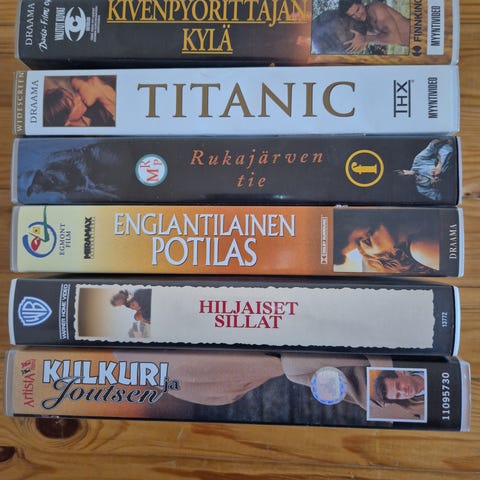 VHS-elokuvapaketti Titanic, Englanti lai nen potilas, Hiljaiset sillat ym.