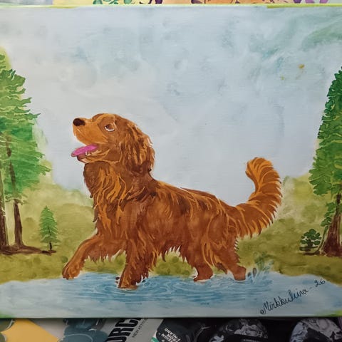 Akryyliväreillä käsin tehty taulu. Hyvät värit
