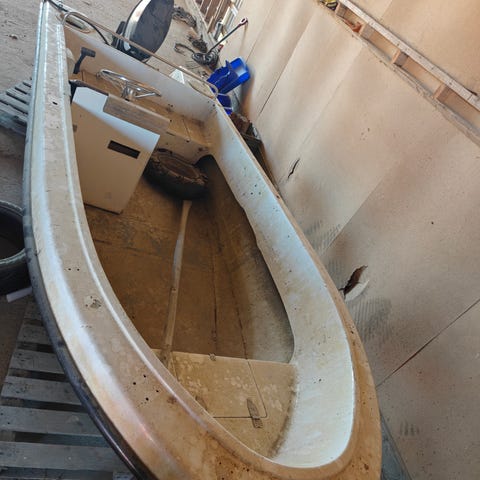 Siisti, ehjä ja kotimainen pulpettivene. Pohja paikkaamaton. Veneessä on rattiohjaus ja tuulilasi.