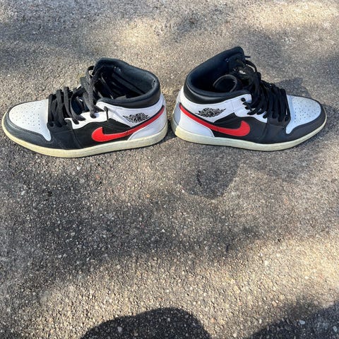 Pieneksi jääneet, vain 5 kertaa jalassa käyneet Nike Air Jordan tennarit, koko 43. Väritys musta, valkoinen ja keltainen. Korkeavartinen malli, nauhakiinnitys ja kumipohja. Sopivat arkikäyttöön ja vapaa-aikaan.