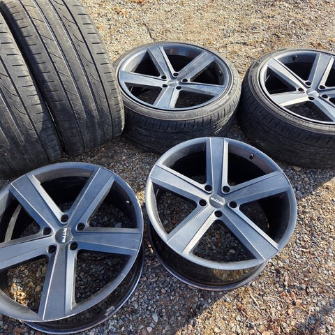 Vanteet 10,5 x 22". ET38. Olleet minulla Q5 Audissa ja ennen sitä ML Mersun alla. Kulutuspinnat pari hyvää ja pari heikompaa, lain täyttämät kuitenki vielä. Kajaanista löytyy ja vain nouto.
