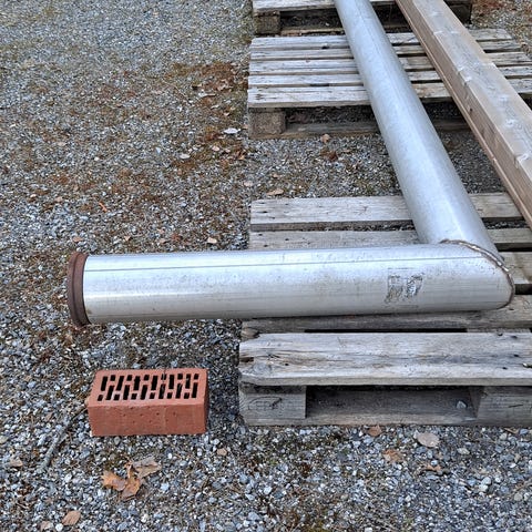 Piippusetti, 1,5 m piippu, teräksinen, läpivientiputki kantokauluksella, piippuputki sadekauluksella