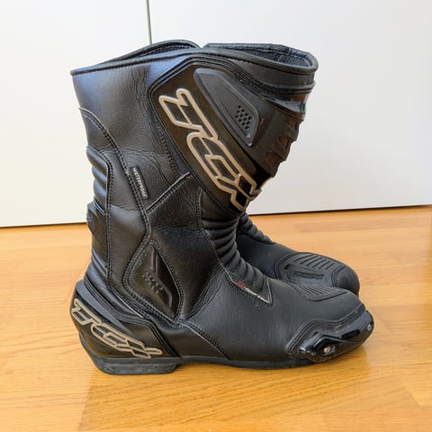 TCX Airtech 3 Gore-Tex moottoripyöräsaappaat, koko EU 45. Väri musta. Varustettu Gore-Tex -kalvolla, joka tekee saappaista vedenpitävät ja hengittävät. Saappaissa on vetoketju ja tarrakiinnitys sivulla helpottamassa pukemista ja riisumista. CE-hyväksytyt moottoripyöräkäyttöön. Päällinen ja vahvikkeet suunniteltu suojaamaan jalkaa ajossa, varressa vetolenkki helpottamassa jalkaan laittoa. Soveltuvat moottoripyöräajoon ja muuhun vastaavaan käyttöön, jossa tarvitaan ajosaappaita.