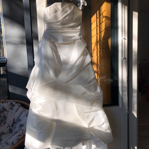 Ostettu aikanaan rekvisiitaksi, joten hääjuhlakäyttöä tälle ei itselle tullut. Tästä saat upean ja laadukkaan morsiousmekon pikkurahalla. Siisti kunto, ei omaan silmään mitään havaittavia kulumia / sotkuja eli käytännössä valmis vihkiseremoniaan. Kunto & mekko dokumentoitu kuviin, joten katsothan ne tarkkaan.